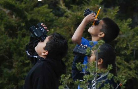 Students study birds drawn to their elementary school campus in Los Angeles. Photo by Mark Boster, L.A. Times
